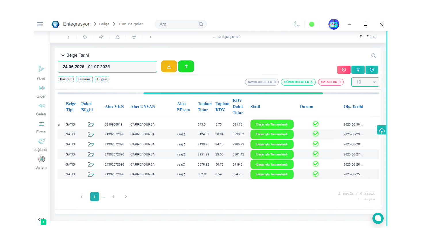 Bulut ve masaüstü ortamlarında olan ERP, Muhasebe veya Ön Muhasebe uygulamalarınıza her yerden bağlanabiliyoruz. Pazaryeri faturalarınızı tek panelde birleştirip gönderiyoruz..